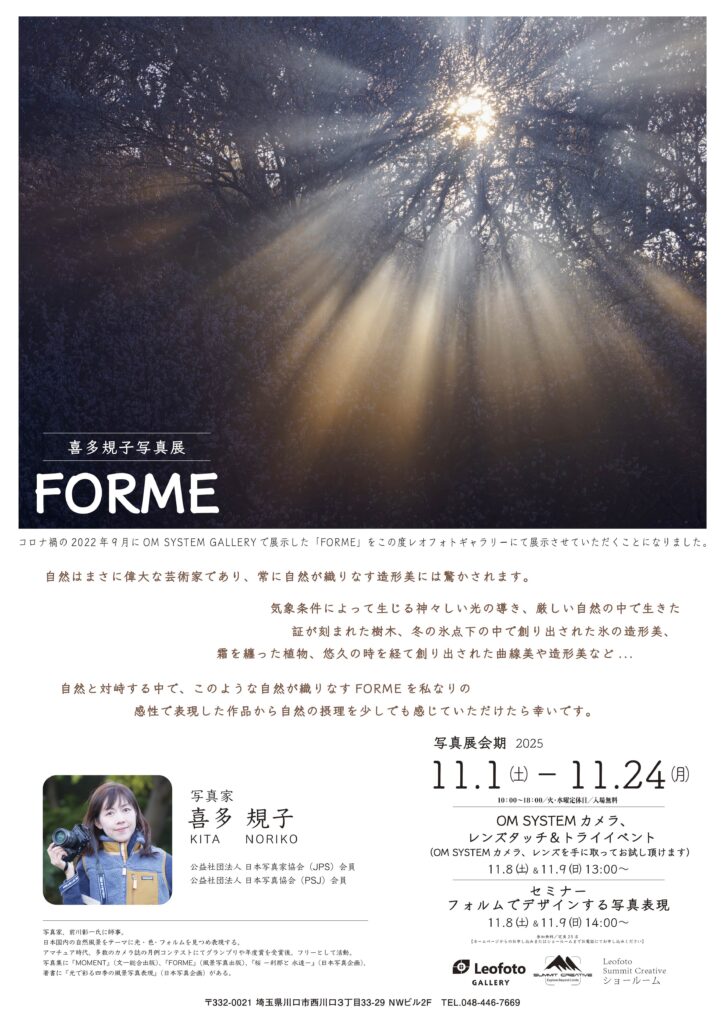 11/1(土)~11/24(月)にレオフォトショールームにて写真家 喜多 規子氏写真展を開催致します。