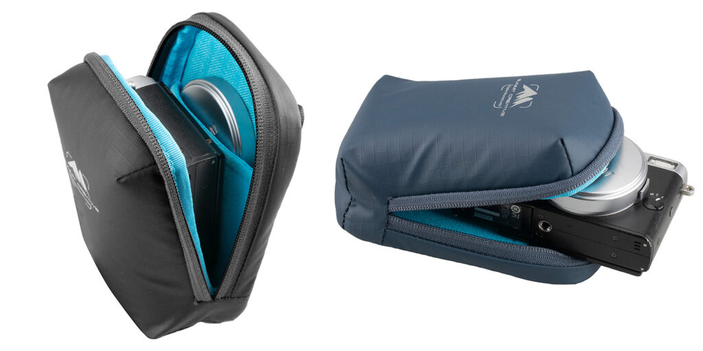 内部にはレンズキャップや小物を入れる事が可能な仕切りがあり、快適な使い心地を実現。開口部は大きく開くため、出し入れする際にカメラ等を傷付けづらい設計となっている。