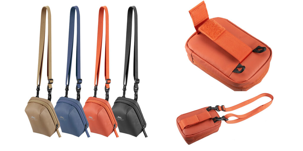 ストラップが付属している為、ポーチのみでの使用も可能。また、ズボンのベルトやサミットクリエイティブのバックパックのベストにも取付が出来る為、シーンに応じた取付が可能となっている。
